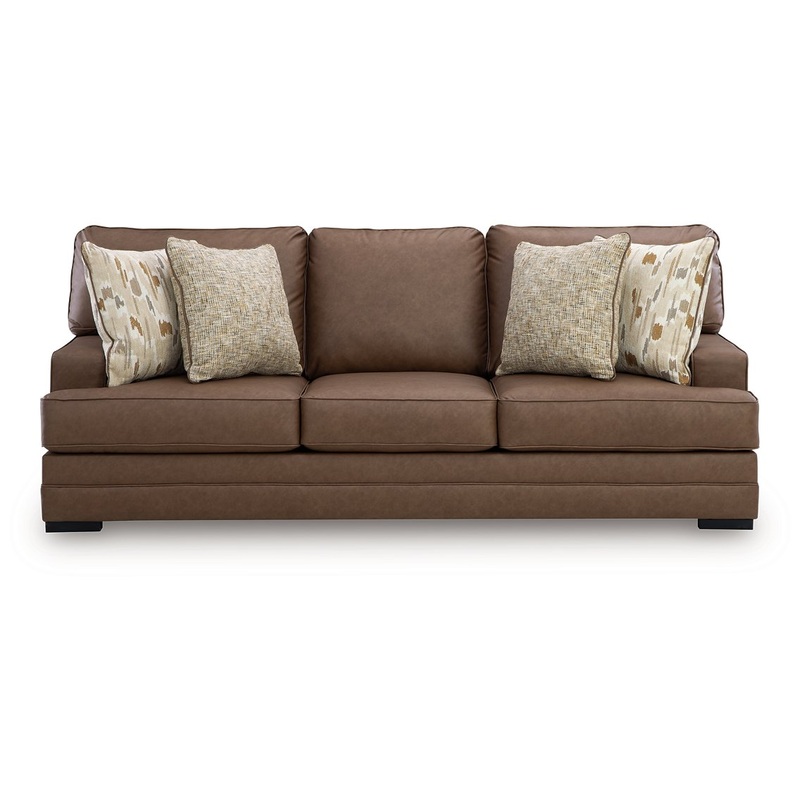 Simple and streamlined, this couch delivers a cozy yet contemporary vibe youll love as much as we do. Its extra-roomy size and supple caramel faux leather invite youand your bestiesto have a seat. This pieces understated elegance and enduring comfort are perfect for entertaining or a relaxing night.