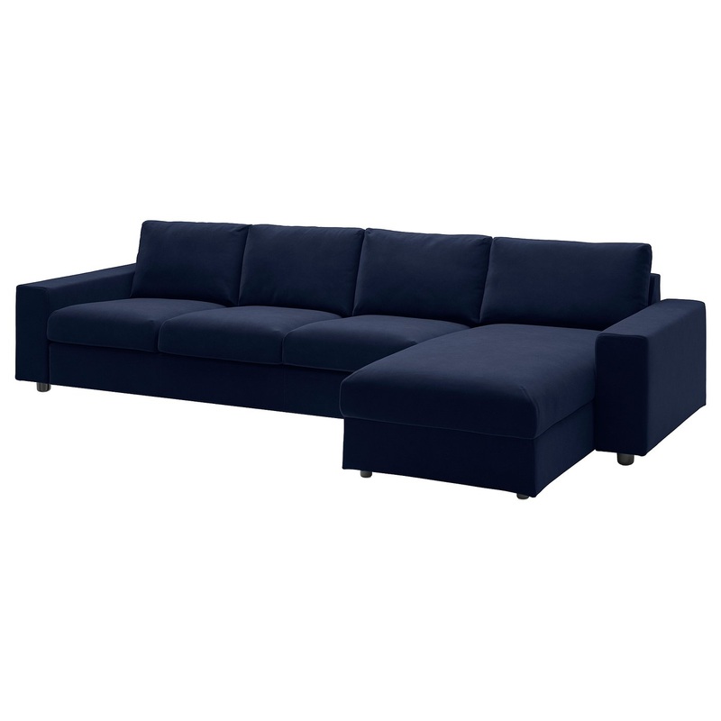 VIMLE 4-seat sofa with chaise longue, with wide armrests/Djuparp dark blue