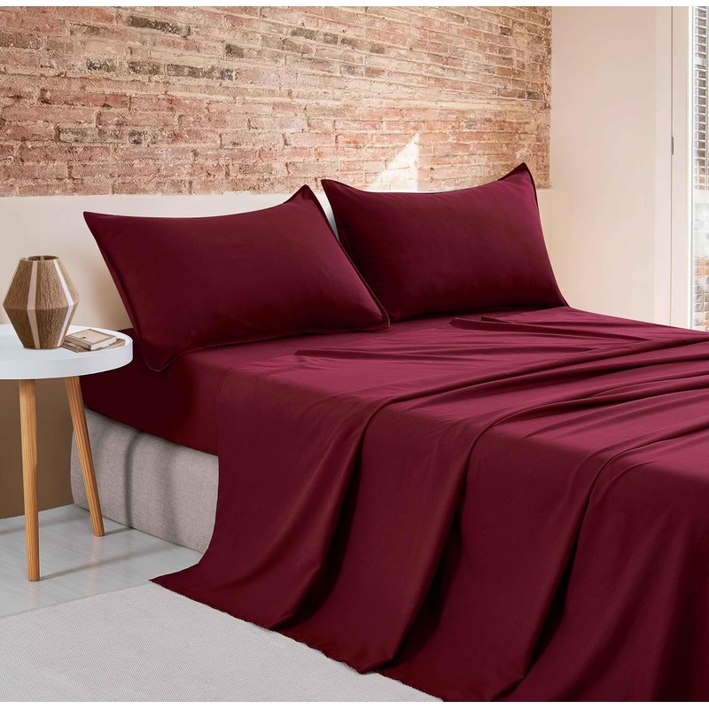 Vintage Washed Microfibre Sheet Set (Burgundy, Queen)