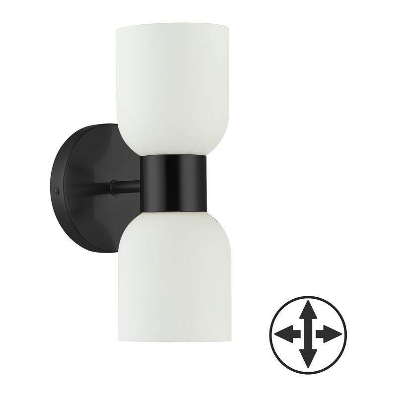 2 Light Matte Black Wall Sconce w/ Opal Glass