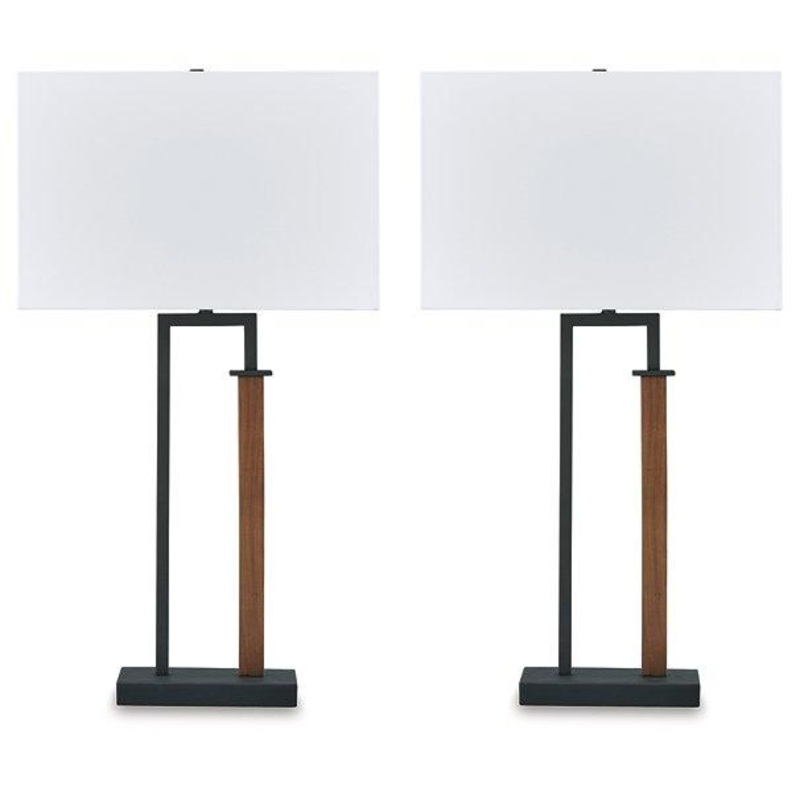 Illuminate your style with this table lamp. Its sleek geometric design, finished in black and brown, adds a designer touch to your abode. The contrasting white shade diffuses light for a soft artistic ambiance. More About This Product Product DetailsMade o