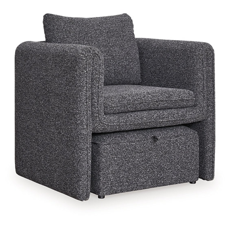 Create a stylish retreat with this space-saving accent chair and ottoman set. Its sophisticated charcoal and black upholstery adds modern elegance to small apartments, living rooms, dorms and more. Curl up and relax in the cozy embrace of the chair and when you need to put your feet up, simply pull out the ottoman that tucks neatly underneath. The best part? This set arrives fully assembled.