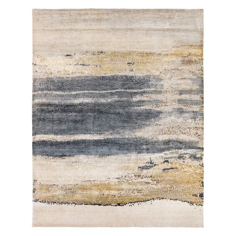The Wabi Sabi collection, envisioned by Zoe Bios Creative, celebrates the beauty of imperfection through artful, globally inspired designs. The Gavaughn rug captivates with its bold, abstract composition in shifting slate gray and luminous gold tones, evoking the organic fluidity of brushstrokes on canvas. Hand-knotted in Tibet from 100% natural wool, this piece merges rugged durability with sumptuous texture, offering both visual intrigue and indulgent softness underfoot. A true conversation starter, it brings artistic depth and worldly sophistication to contemporary interiors.