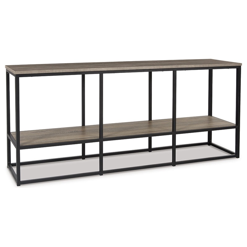 Making a great case for casual contemporary design with an urban attitude, this highly versatile TV stand is loaded with possibilities. Its cool combination of weathered replicated wood grain and linear black metal is a mastery in open-concept styling.