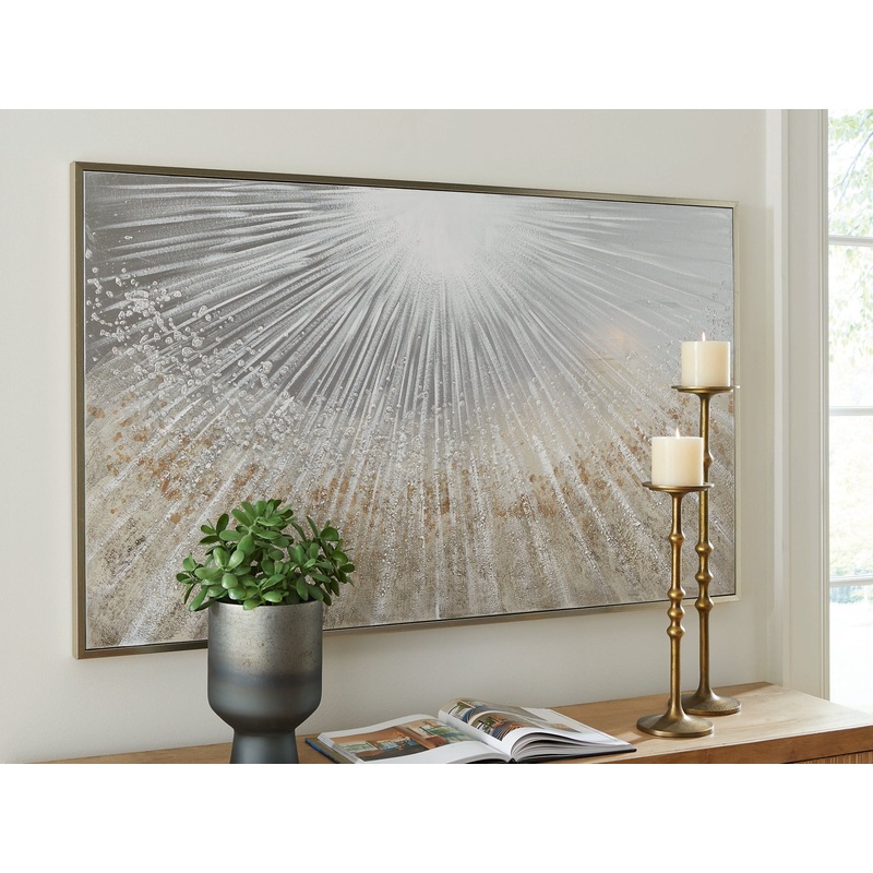 Brighten up your decor with this wall art. Its abstract design recalls the beauty of sunbeams peeking through the clouds, with gleaming metallic foil embellishments for added flair. A coordinating champagne-colored frame beautifully completes the piece.