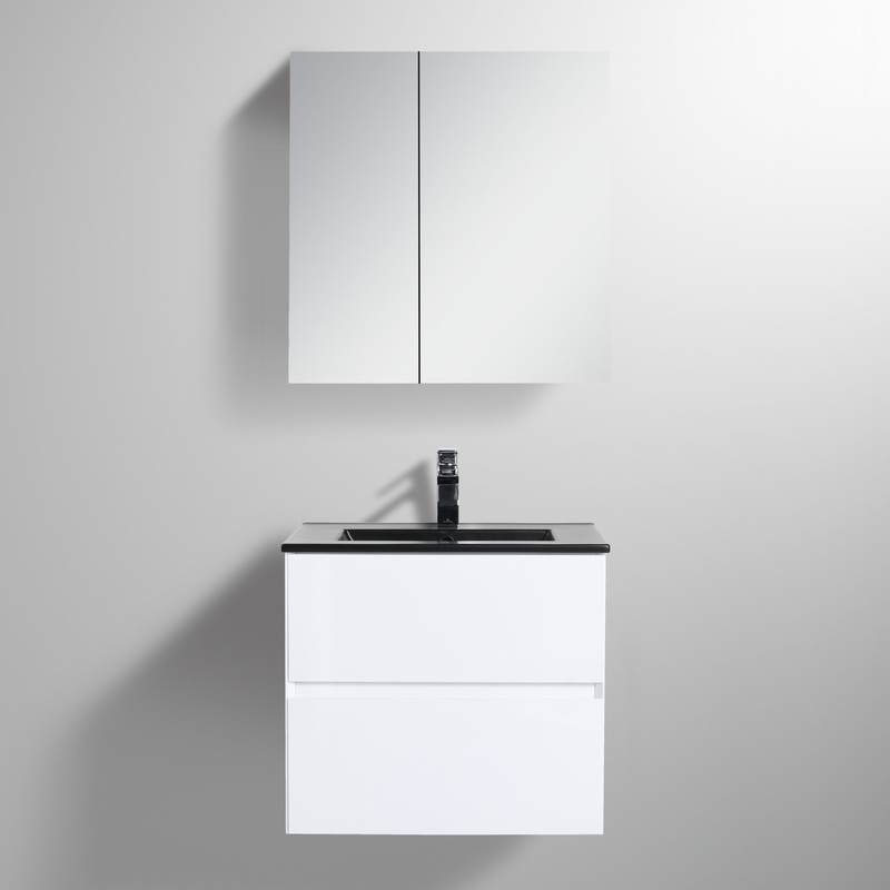 Contemporary Bathroom Style: The Handle-free miter-cut edge drawers opening design with color options in Glossy White, Brown Walnut or Classic Oak, provides simple modern neat look with a clean aesthetic.