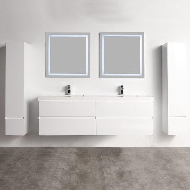 Contemporary Bathroom Style: The Handle-free miter-cut edge drawers opening design with color options in Glossy White, Brown Walnut or Classic Oak, provides simple modern neat look with a clean aesthetic.