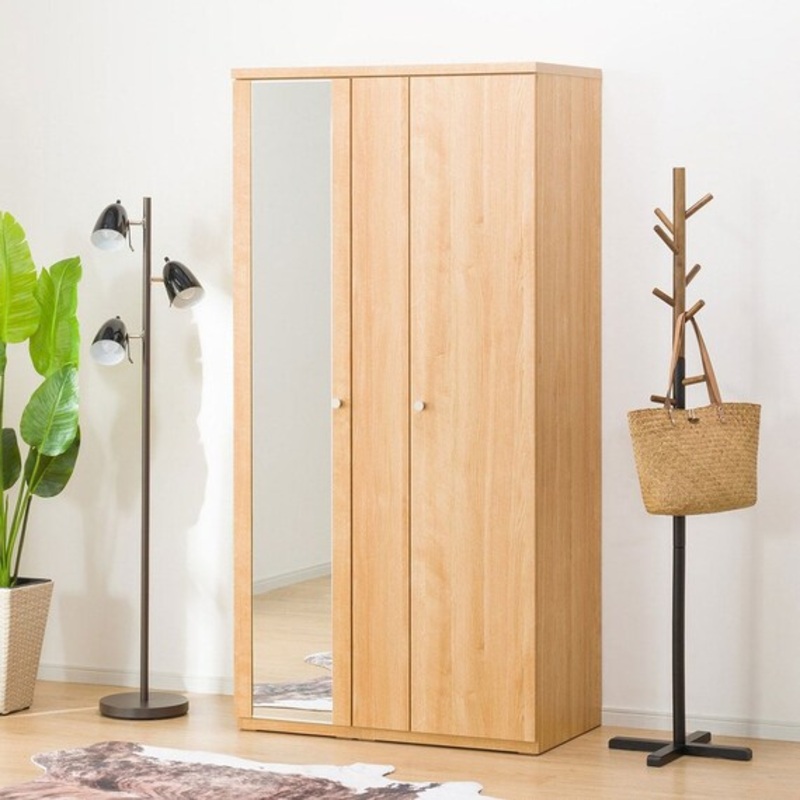 It is a wardrobe with a large mirror on the door that reflects the whole body.