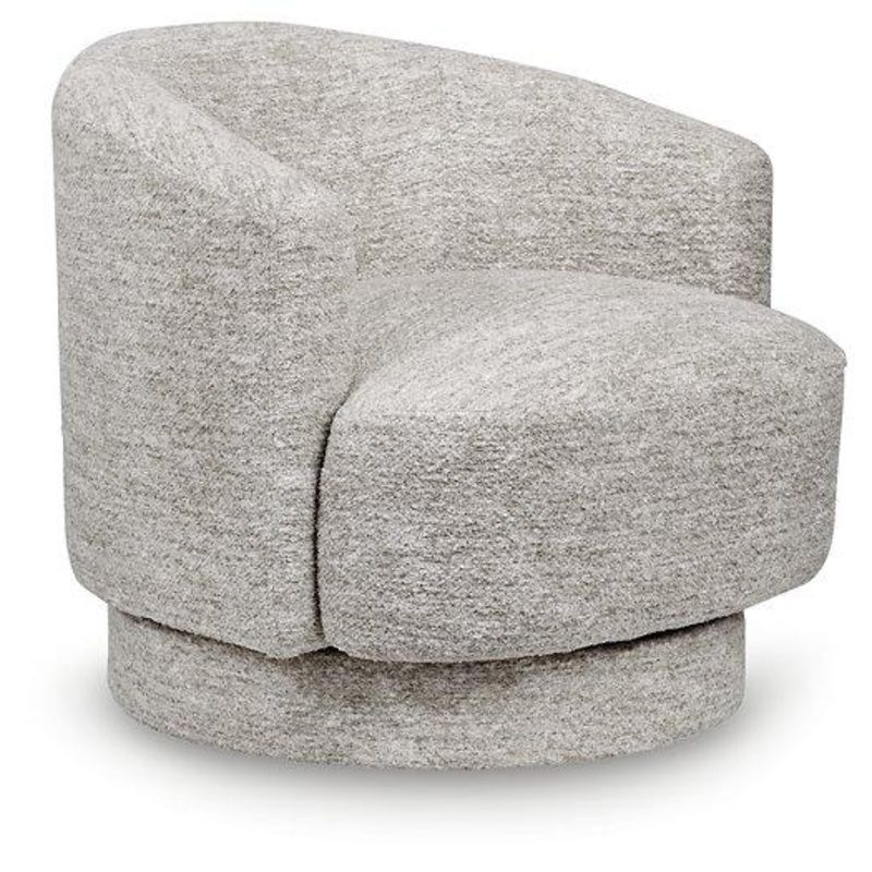 Relaxation meets refinement in this accent chair. With an ultra-soft fabric in a crisp, light neutral, it invites you to curl up in comfort. A 360-degree swivel provides added versatility. Drape a throw blanket over the back, or add an accent pillow for a pop of colorwith this chair, the possibilities for cozy-contemporary style are endless.