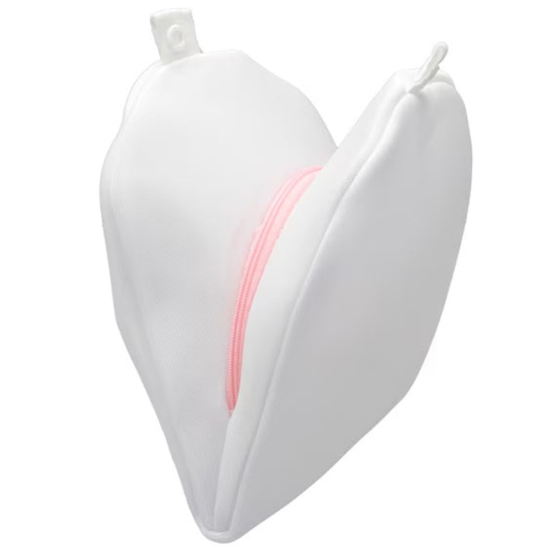 Heart-shaped bra that maintains its shape while washing. The heart- shaped pockets wrap around the left and right cups, preventing misalignment, rubbing, and twisting that occur during washing and spin-drying.
