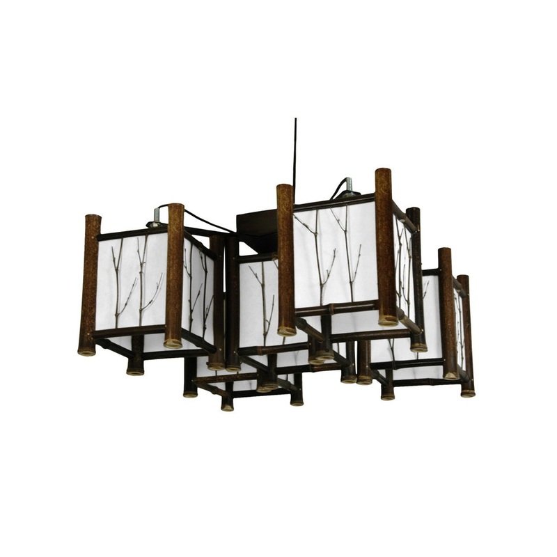 A natural, rustic alternative to metal and glass western style ceiling lights. With five light bulbs, this fixture provides significant wattage in a distinctive, elemental, Japanese design. This lantern includes a convenient power cord and switch configura