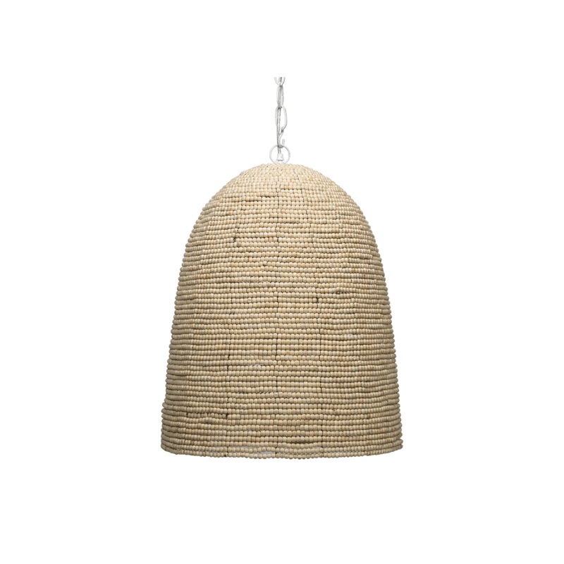 Adorned with hundreds of hand-carved mango wood beads, each with its own character, this oversized pendant will embellish any room with eye-catching texture. Whether it recalls summer at the seaside or bohemian chic, the substantial scale makes it an ornam