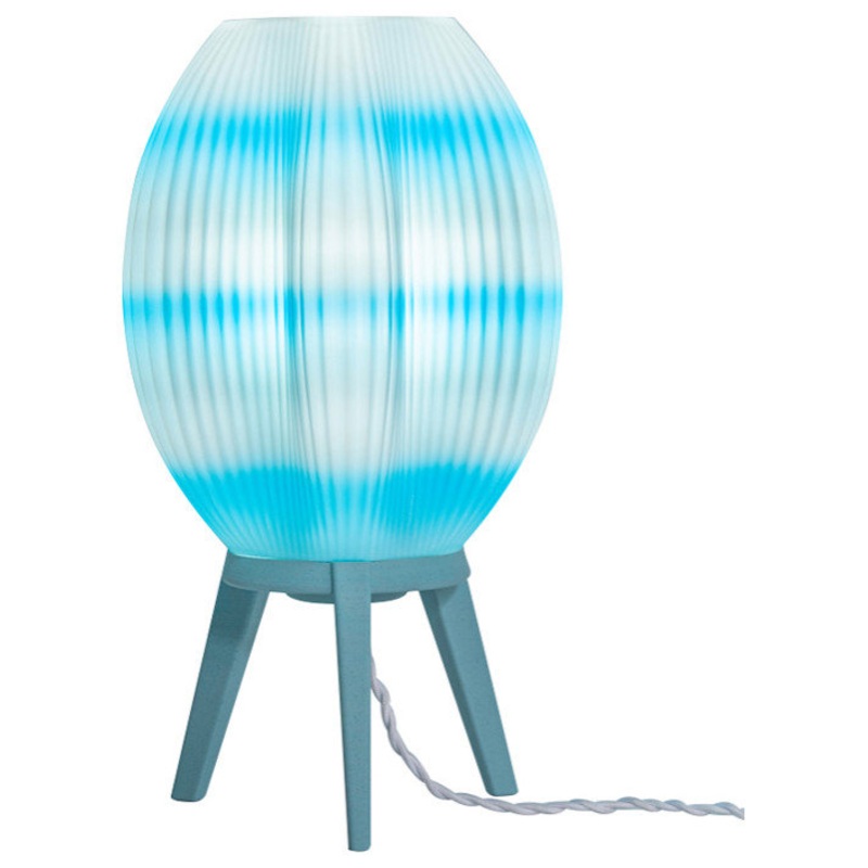 -Minimalist blue three legged base is accentuated by a modern PLA filament blue and white wavy shade