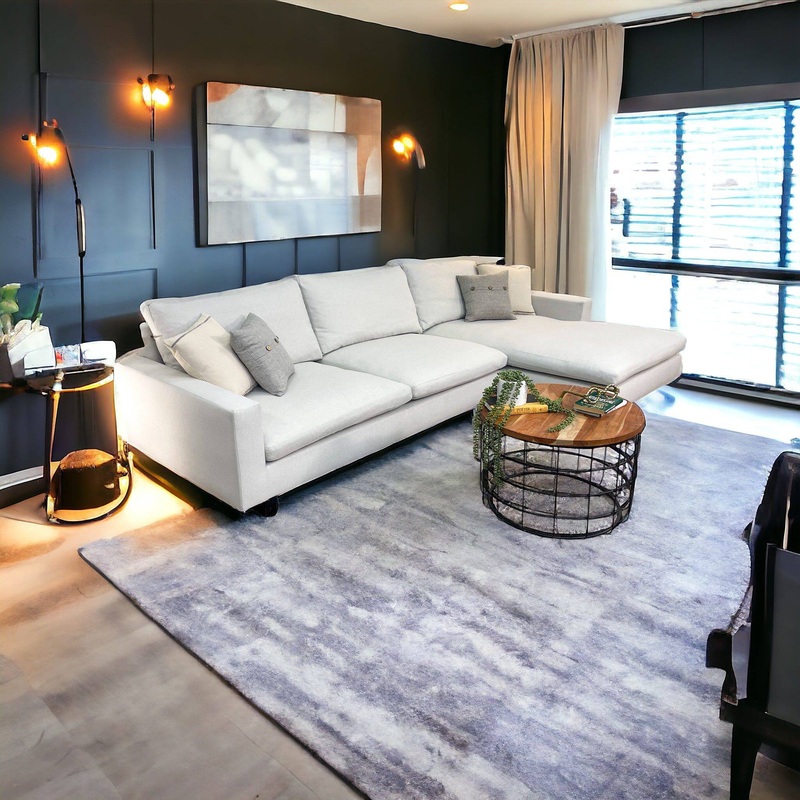 This is a West Elm Harmony 2 piece sectional couch with right-facing chaise and ivory white Oyster Eco Weave Performance fabric. It’s in perfect like-new condition, with no damage, very big, and super comfy. It has been professionally cleaned and ready for a new home.