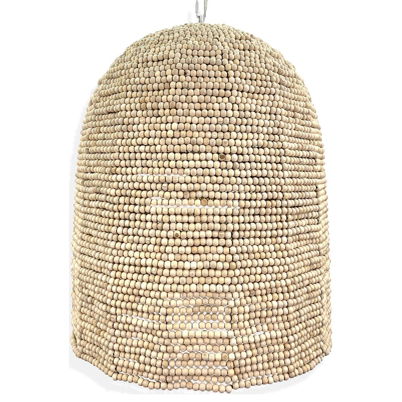 -Add a touch of bohemian glam to your home decor with this natural fir wood beaded pendant finished with brushed silver accents.
