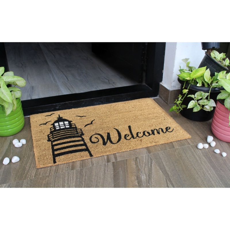 Make your home more inviting with our printed contemporary doormat. Crafted of coir, a fiber made from the husk of a coconut, this textural piece will keep the outdoors out and the indoors a little cleaner. Coir face with vinyl non-skid back. To clean simply sweep or shake. Made in India.