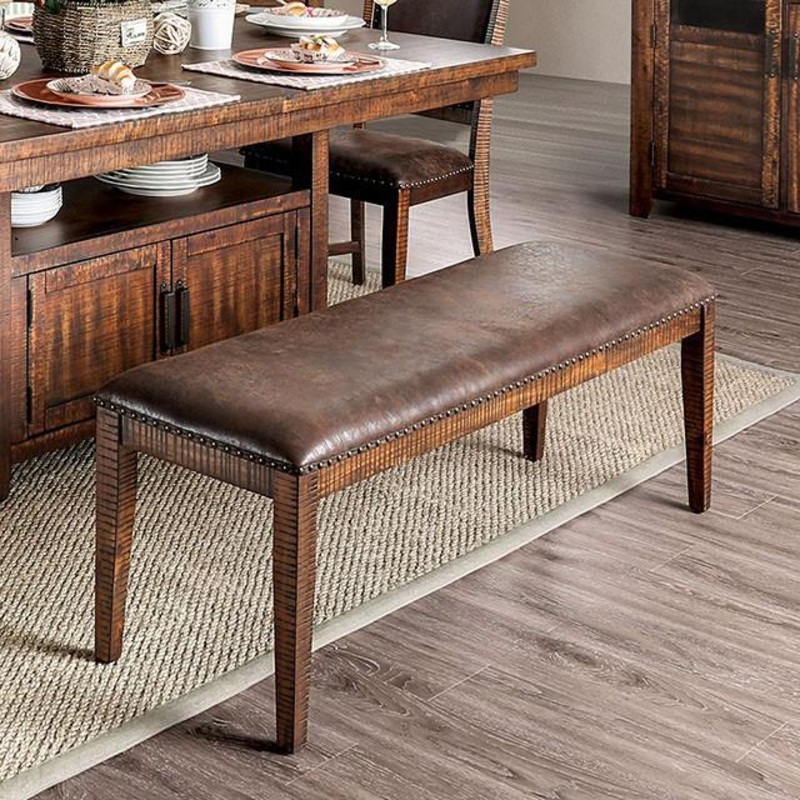 Wichita Light Walnut Bench, 52"L X 16"W X 18 3/4"H, 33lbs. This dining set keeps everyone at the table and comfortably eating dinner. Padded leatherette seating keeps people cozy. A matching server table completes the rustic allure. Features: Padded Leathe