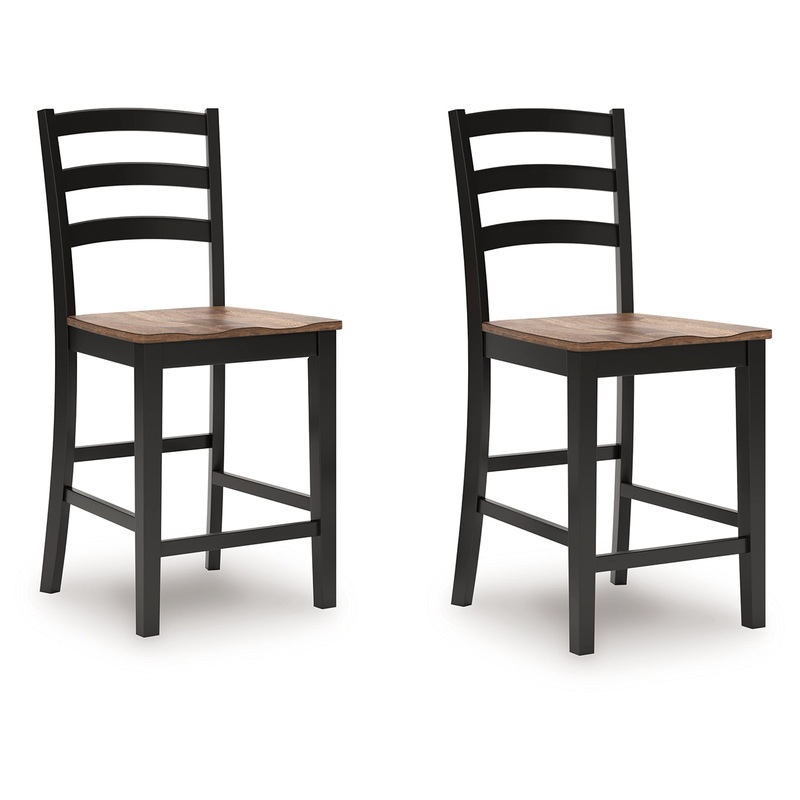 This counter height bar stool dresses up your favorite farmhouse motifs with modern flair. A contoured butcher-block style seat keeps you comfortable and provides a ruggedly chic contrast to the sleek black frame.