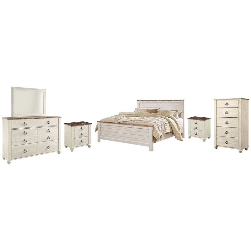 Willowton California King Panel Bed with Mirrored Dresser, Chest and 2 Nightstands