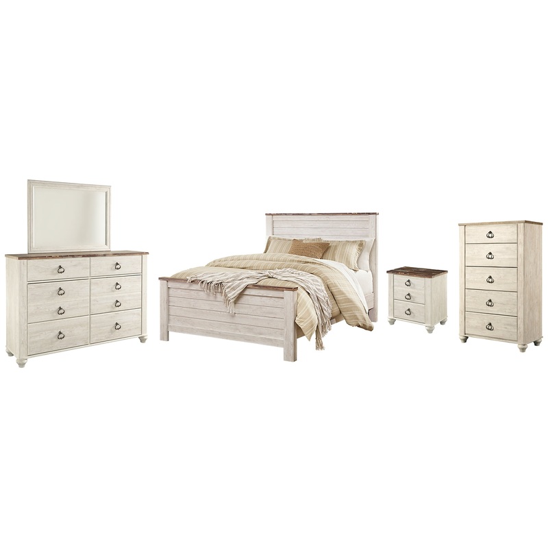 Willowton Panel Bed With Mirrored Dresser, Chest And Nightstand Willowton Queen Panel Bed with Mirrored Dresser, Chest and Nightstand