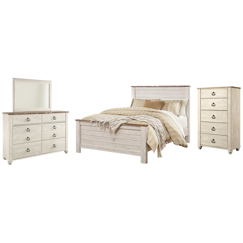 Willowton Queen Panel Bed with Mirrored Dresser and Chest
