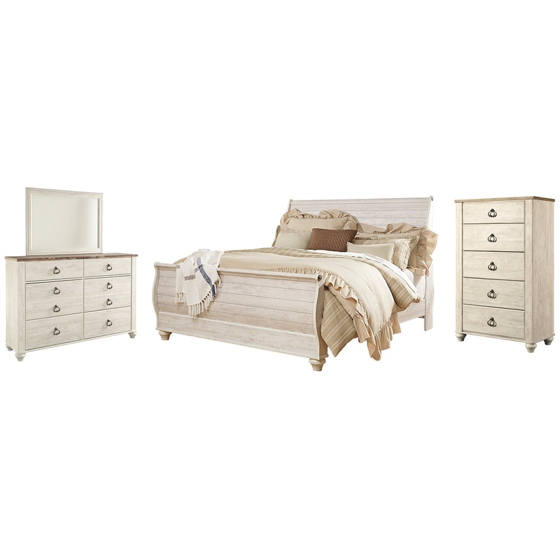 Willowton Sleigh Bed With Mirrored Dresser And Chest