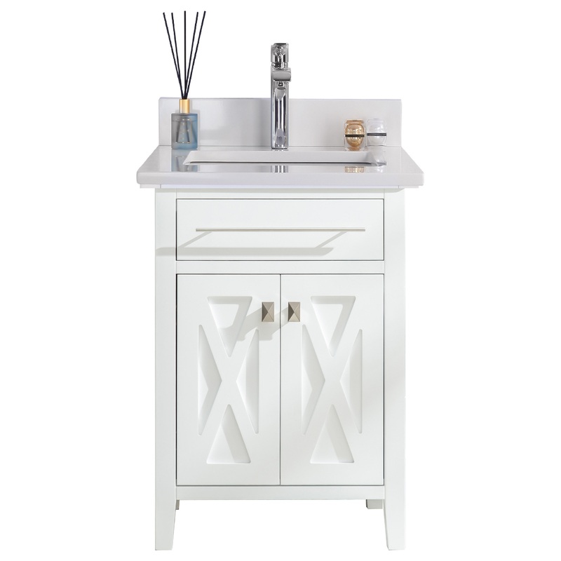 Wimbledon – 24 – White Cabinet + White Quartz Counter, no mirror, 22x24x34.5 – Transitional – Bathroom Vanities And Sink Consoles – by VirVentures