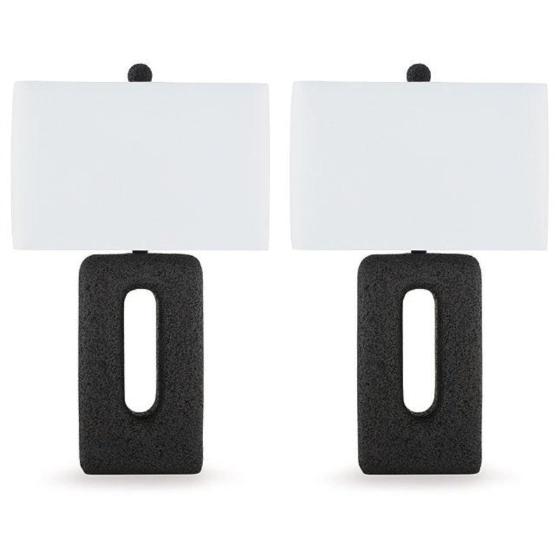 These sculptural table lamps are an enlightening choice for those with an eye for clean-lined, modern design. The textured cutout base and sleek rectangular shade elevate them to an art form. Place these accent lamps on a console table for a touch of chic