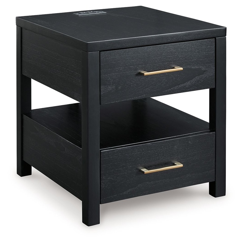 If you are a lover of simplicity, this end table is the perfect choice. Its black finish, casual contemporary design and spacious storage capacity provide functional style wherever its displayed. And with conveniently located USB charging ports, this table