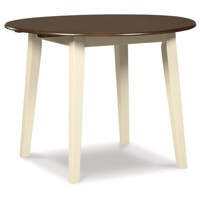 Turn your eat-in kitchen or dining space into a cottage-chic retreat with this round drop leaf table. Two-tone finish serves up a double helping of charm. When accompanied by the matching ladderback chairs, what a storybook scene. More About This Product P