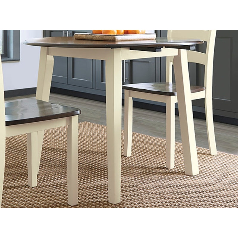 Turn your eat-in kitchen or dining space into a cottage-chic retreat with this round drop leaf table. Two-tone finish serves up a double helping of charm. When accompanied by the matching ladderback chairs, what a storybook scene.