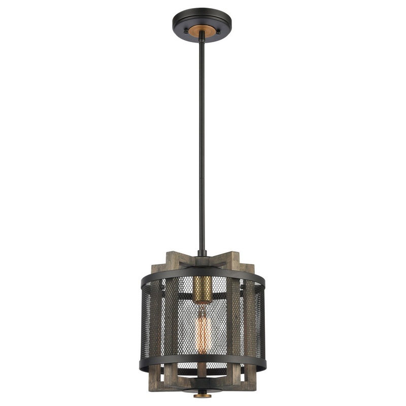 Woodbridge 1 Light Mini Pendant, Matte Black/Weathered Oak/Aged Brass – Industrial – Pendant Lighting – by Stein World Operating Company