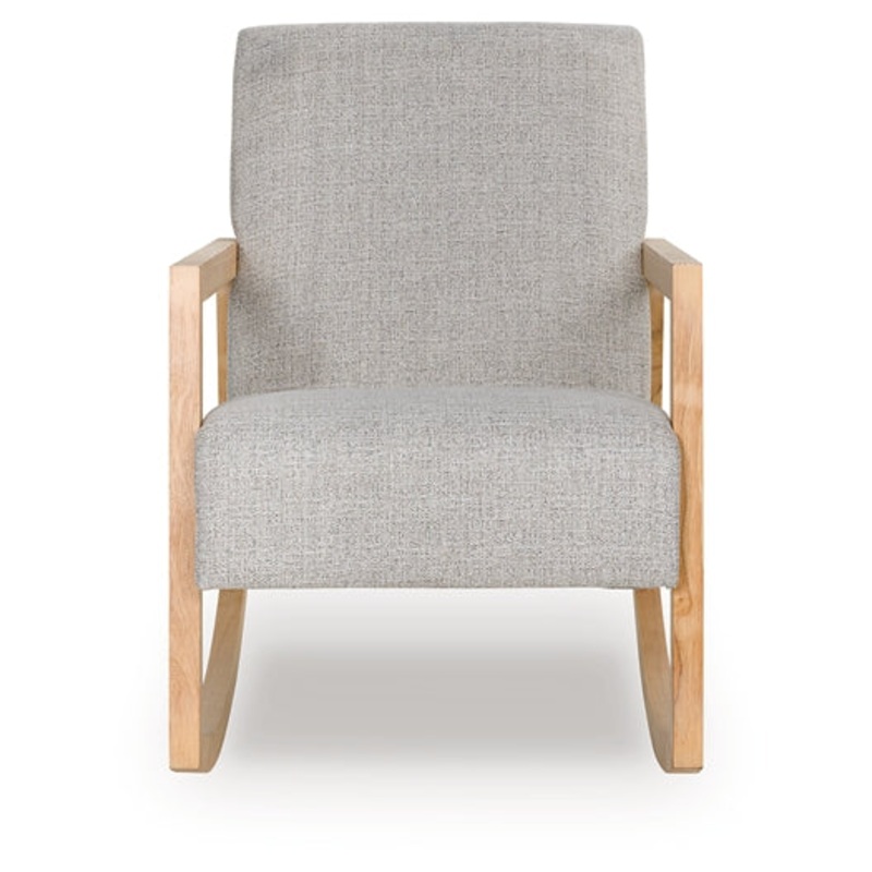 This accent chair is an easygoing beauty. Its sleek rocking chair profile with solid wood legs is perfect for living rooms, nurseries or any space where you want to relax and unwind. And with easy-to-clean Next-Gen Nuvella fabric, upkeep is a breeze.Specif