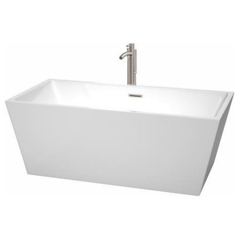 The Sara soaking tub – simple, geometric, elegant, perfect. Inspired by the angular design of industrial architecture, but softened with modern materials. This bathtub is built to last and always warm to the touch. The Venezia bathtubs are a perfect place to melt away tension and stress, leaving you refreshed, recharged and renewed. Wyndham Collection WCBTK151463ATP11 Key Data: 63″L x 31-1/2″W x 23-1/2″H Freestanding Installation Water Depth: 16″ Roman Tub Faucet Included Wyndham Collection WCBTK151463ATP11 Features: Covered under Wyndham Collection’s 2 year limited warranty Constructed of high quality acrylic – warmer to the touch than enameled iron or steel Freestanding soaking tub Center drain with slotted overflow Pop-up tub waste included Non-textured acrylic bottom Tub filler with personal handshower included Wyndham Collection WCBTK151463ATP11 Specifications: Overall Length: 63″ Overall Width: 31-1/2″ Overall Height: 23-1/2″ Basin Length: 42-1/2″ Basin Width: 19″ Water Depth: 16″ Maximum Water Capacity: 84 gallons Number of Bathers: 1 Wyndham Collection WCAT102340P11 Tub Spout Specifications: Overall Height: 37-3/8″ (deck to top of faucet) Spout Height: 31-1/8″ (deck to spout outlet) Spout Reach: 9″ (center of faucet to spout outlet) Flow Rate: 6.3 gallons-per-minute Single hole required for faucet installation All hardware required for faucet installation is included