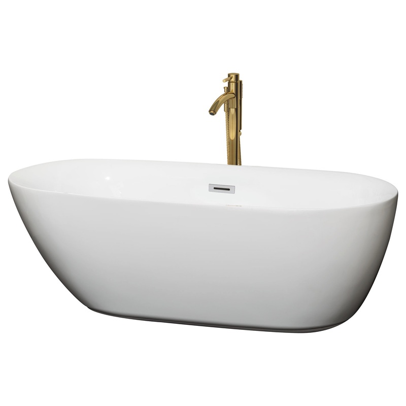 The Melissa soaking tub is inspired by the free-form beauty of nature, with no hard edges or stark contrasts. Experience the allure of the asymmetrical shape, the smooth curves that invite your touch, and the soft flow of the lines. It’s time to get organic. Built to last and always warm to the touch, these beautiful bathtubs are a perfect place to melt away tension and stress, leaving you refreshed, recharged and renewed. Wyndham Collection WCOBT100065ATP11 Features: Covered under Wyndham Collection’s 2 year limited warranty Acrylic construction for strength and ease of handling and installation Soaking bath tub for a calm bathing experience and is much deeper than standard tubs for full immersion Tub faucet with personal hand shower included Equipped with overflow assembly permitting the user to enjoy a deep soak without worrying about spillage Warmer to the touch and more comfortable than traditional enamel or steel tubs Includes adjustable base for accurate leveling and stability Includes pop-up drain and overflow Tub Specifications: Overall Height: 20-1/2″ (bottom to top of tub) Overall Length: 65″ (left to right of tub) Overall Width: 31-1/4″ (front to back of tub) Basin Length: 41″ (left to right of bottom basin) Basin Width: 19-3/4″ (front to back of bottom basin) Basin Depth: 16-1/4″ (top to bottom of basin) Maximum Water Capacity: 48.5 gallons Water Depth: 11″ Drain Connection: 1-13/16″ Faucet Specifications: Installs with free standing configuration Spout Height: 31-1/8″ (deck to spout outlet) Spout Reach: 9″ (center of faucet body to center of spout outlet horizontally) Faucet Flow Rate: 6.3 gallons-per-minute Hand Shower Flow Rate: 2.5 gallons-per-minute Faucet Hole Size: 2-13/16″ Faucet Holes: 1