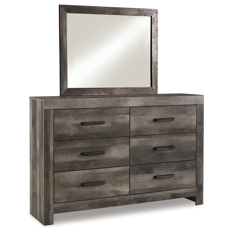 This dresser and mirror set is sure to win your heart with its daring designer take on modern rustic. The dresser and mirror’s crisp, clean and minimalist-chic profile is enriched with a striking replicated oak grain with thick plank styling and a weathered gray finish for that much more authentic character. Large-scale hooded pulls gracing the flush-mount drawers add such a distinctive twist.