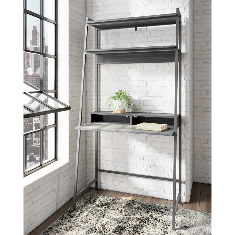 Elevate your home office with this simply sensational desk and shelf. Pairing a dark wood grain look with a black metal frame for modern appeal, the minimalistic desk provides a convenient work surface with incorporated cubby shelves (with cutout for wire management) and two upper shelves for extra storage and display space. Its open-concept design, sleek aesthetic and built-in charging ports help you make the most of small space living.