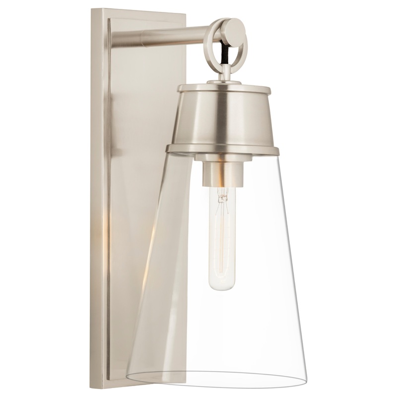Z-LITE 2300-1SL-BN 1 Light Wall Sconce, Brushed Nickel. Frame Finish: Brushed Nickel. Frame Material: Steel. Shade Finish: Clear. Shade Material: Glass. Dimension(in): 9.25(L) x 7.5(W) x 16(H). Bulb: (1)60W Medium Base, Dimmable(Not Included). UL Classific
