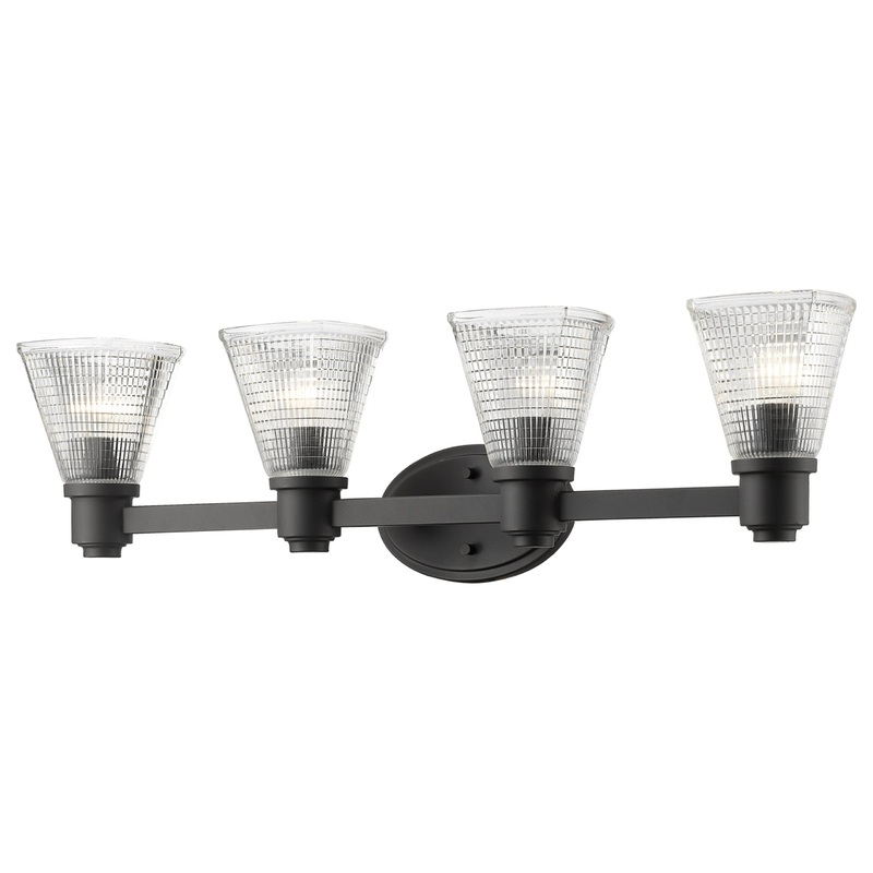 Z-Lite 449-4V-Brz 4-Light Vanity Light, Clear – Transitional – Bathroom Vanity Lighting – by Buildcom