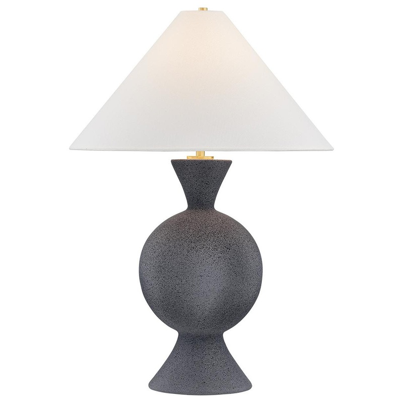 The Zadeh lamp’s artful stacking of shapes creates a striking visual impact. A reactive ceramic glaze gives the base its matte texture and rich tonal variance, while the interplay between a large central sphere and delicate trumpeted forms creates an unexpected tension. A simple conical linen shade tops off the sculptural assembly. Due to the one-of-a-kind nature of the medium, exact colors and patterns may vary slightly from the image shown.
