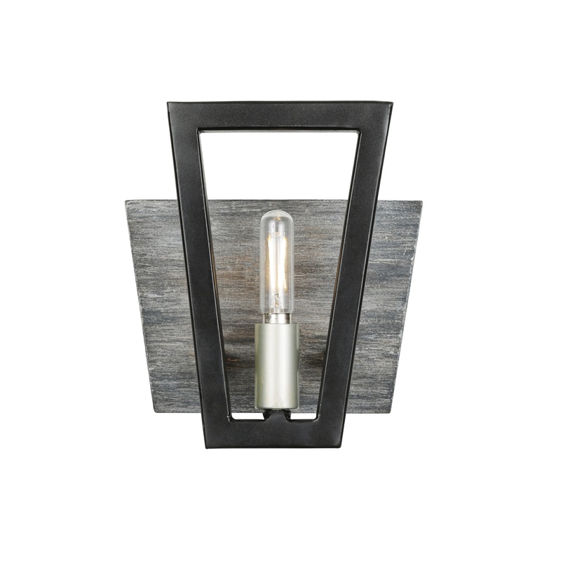 .- Zag 1-Lt Bath – Black/Grey Wood – Industrial – Bathroom Vanity Lighting – by 1STOPlighting