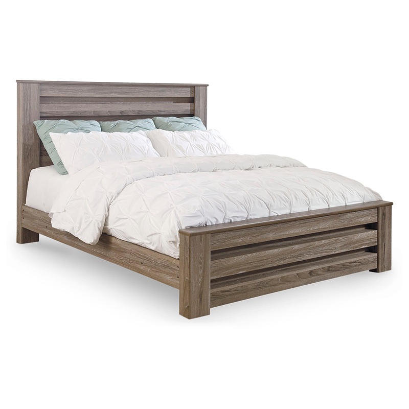 Urban sophistication with a decidedly relaxed air. If effortless elegance is the impression youre going for, this king poster bed is custom made to fit your space. Its got the crisp, clean lines of a contemporary piece, but with softly weathered elements, including an earthy gray finish that lets the beauty of replicated oak grain flow through. Mattress and foundation/box spring available, sold separately.