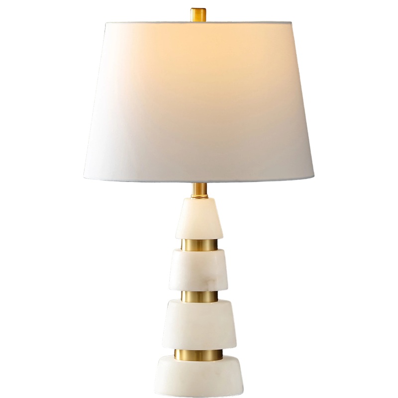 Abounding with contemporary charisma, this Zhang Table Lamp is a stellar standout in any room. Zhang’s four elongated cylindrical tiers of hand-sculpted white alabaster and stepped nickel or gold accents exude a decadently dramatic sense of motion, while its tapered drum shade further highlights the decorative depth of its conic silhouette.