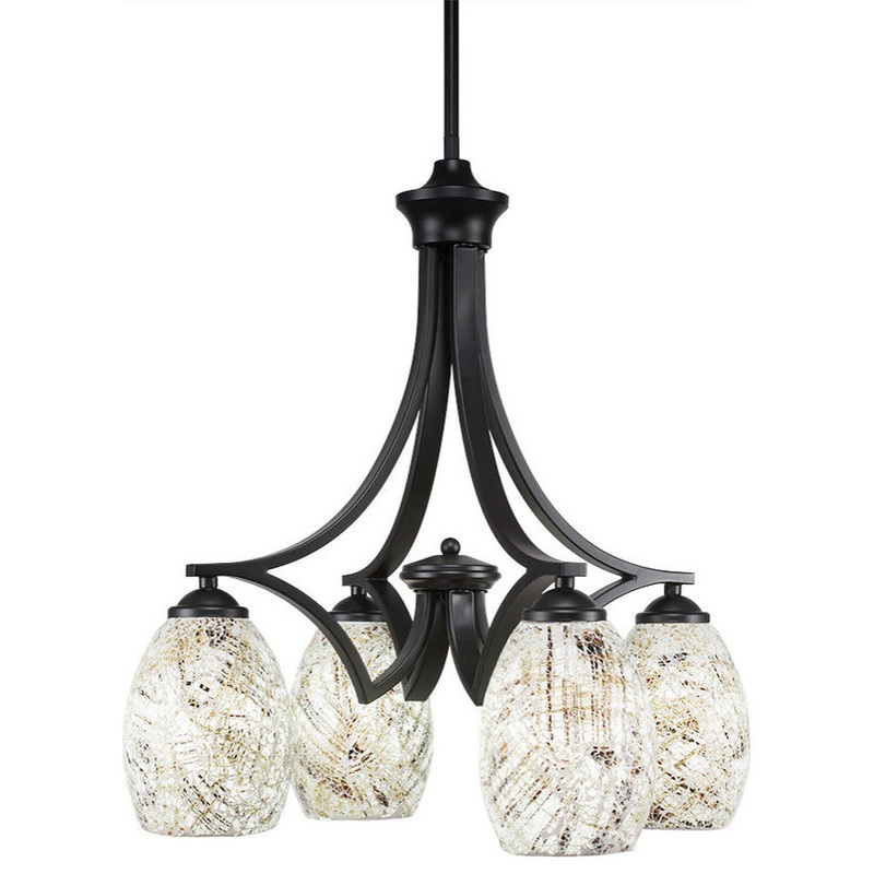 Zilo 4 Light Chandelier, Matte Black Finish With 5″ Natural Fusion Glass – Contemporary – Chandeliers – by IsabellesLightingcom