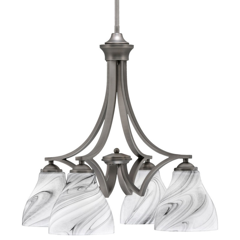 Zilo Downlight, 4 Light, Chandelier, Graphite Finish, 6.25″ Onyx Swirl Glass – Transitional – Chandeliers – by Toltec Lighting